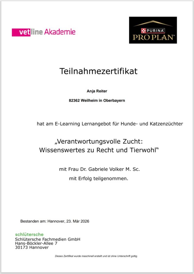 Ich nehme immer wieder an Seminaren und Schulungen rund um die Hundezucht teil.