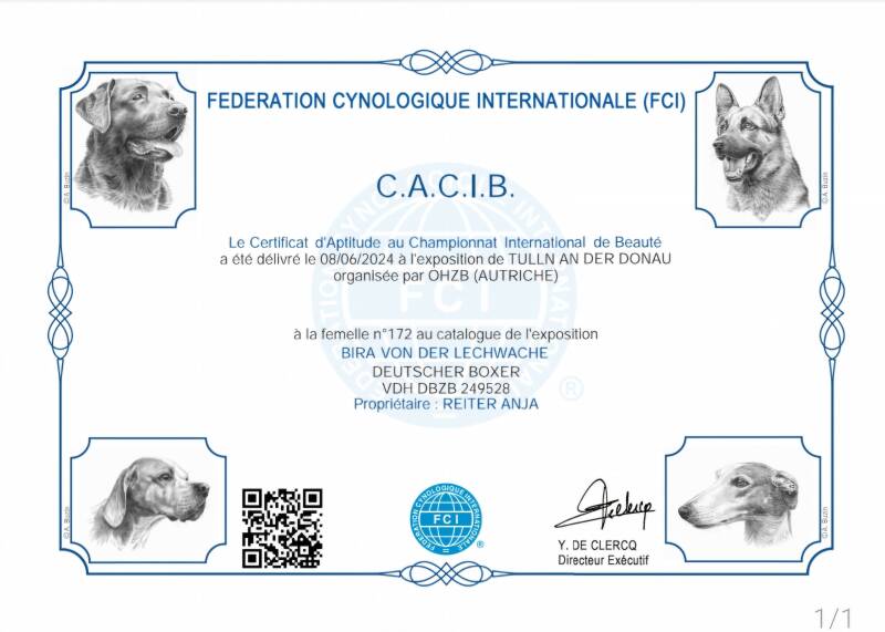 Bira wurde der Österreichischer Champion nach 7x Vorzüglich1 mit CACA am 11. Juni 2024 zuerkannt.